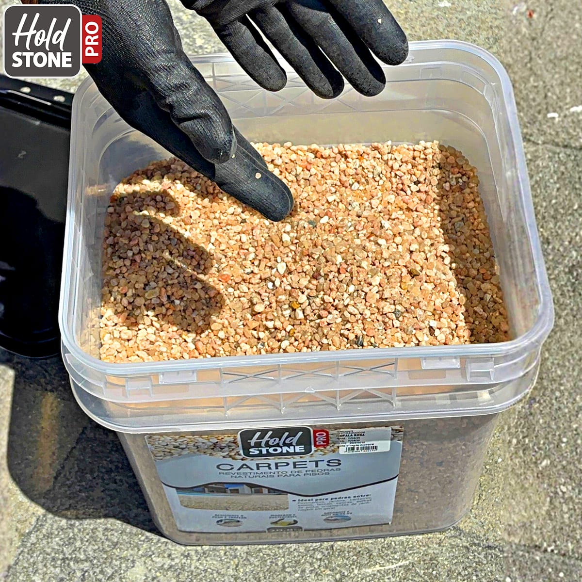 Hold Stone Pro, com a dosagem exata já calculada para a quantidade de pedras do balde, garantindo aplicação rápida, simples e com resultado perfeito.