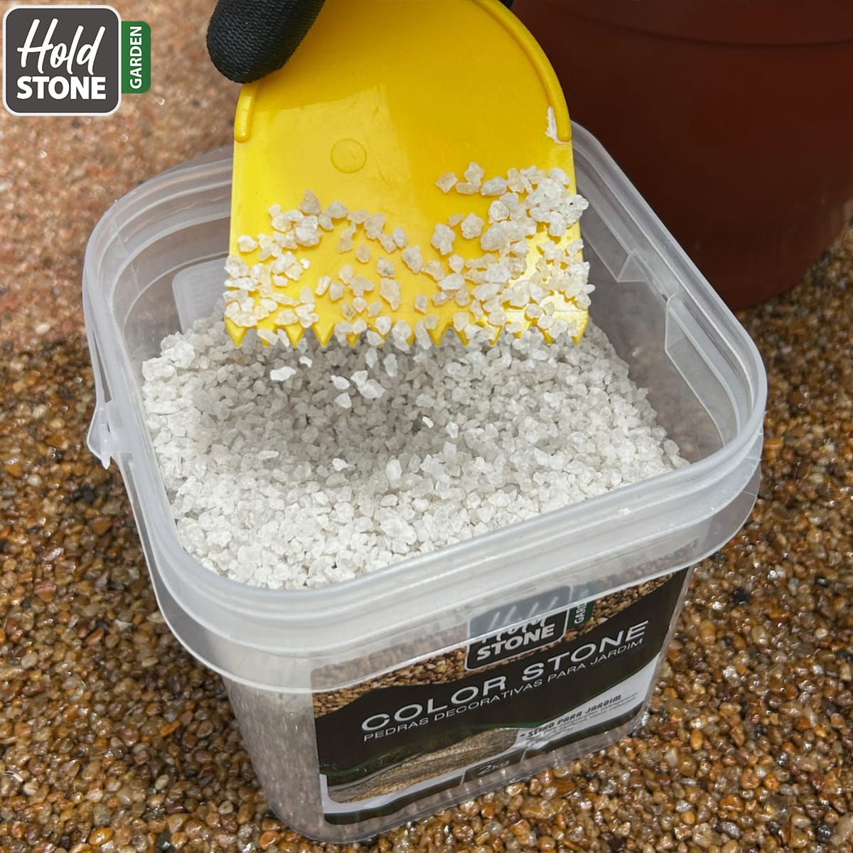 Dê vida nova ao seu paisagismo com o Hold Stone Colors - O primeiro fixador colorido de pedras do Brasil. Trata-se de um revestimento pigmentado drenante e atóxico.